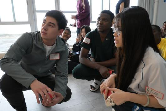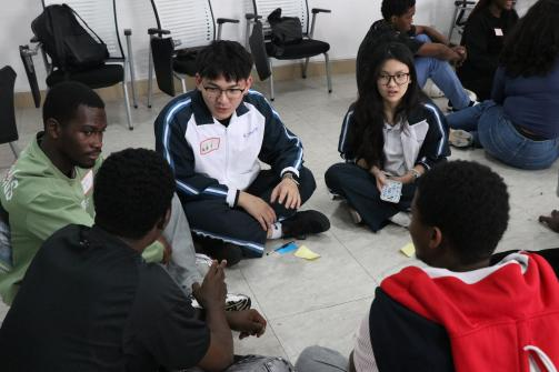“汉语小助教”们耐心协助留学生使用汉语进行组内破冰