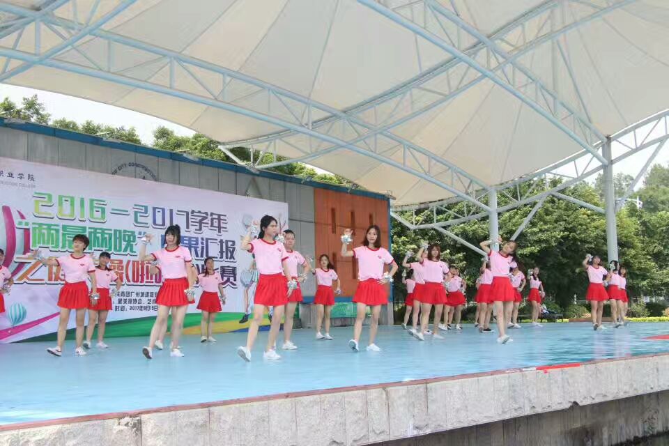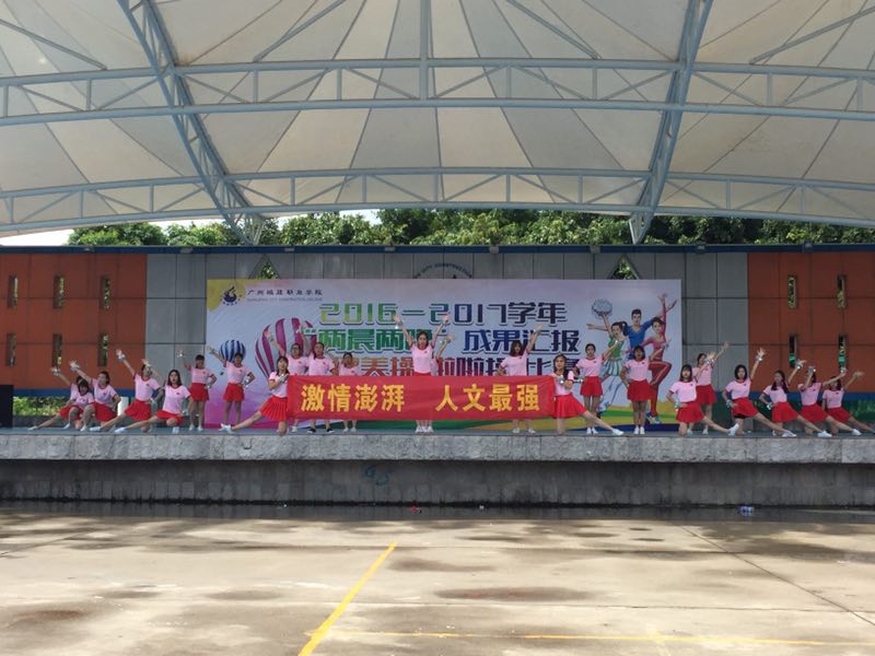 6月15日下午,广州职业学院首届健美操啦啦操比赛在三区文体广场落下帷幕,由16网络新闻与传播班26名同学组成的人文学院“仙女队” 代表队获得了规定动作项目二等奖。
