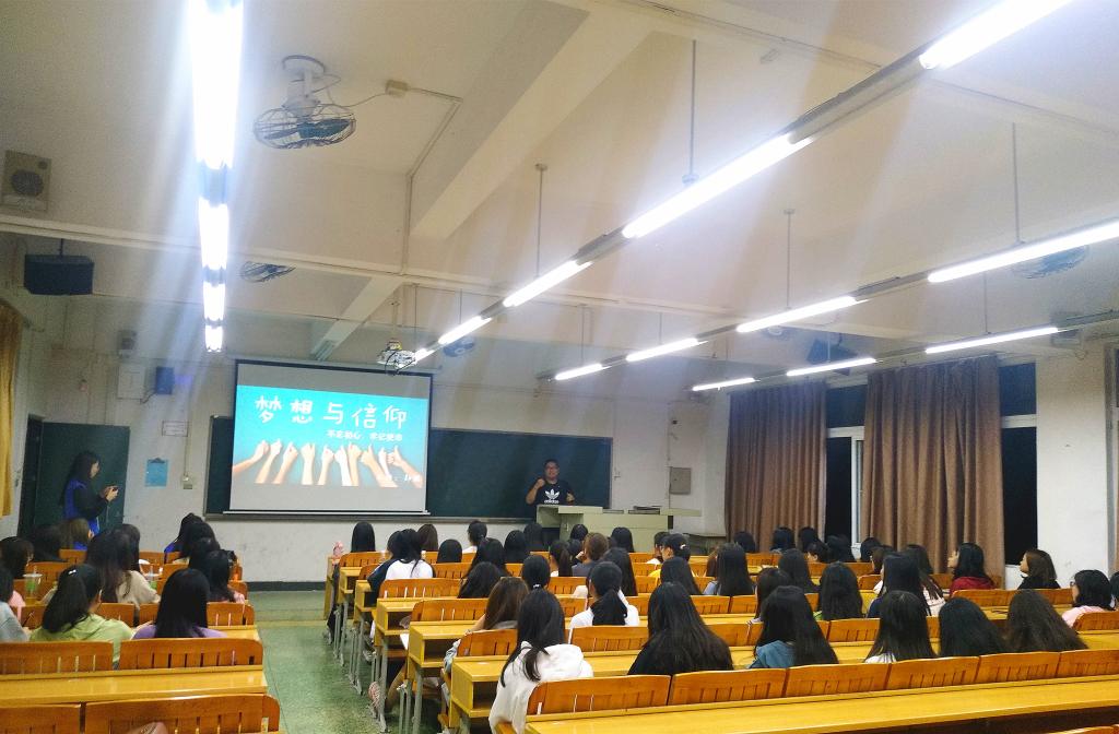 大学阶段是大学生形成正确人生观的关键时期,为进一步将“不忘初心、牢记使命”主题教育融入到学生教育中,11月25日晚上8:30,人文学院在人文艺术楼221课室举行了四栋“两站”系列专题教育讲座。人文学院党总支副书记、副院长彭聪出席并讲授《“不忘初心、牢记使命”梦想与信仰》一课。