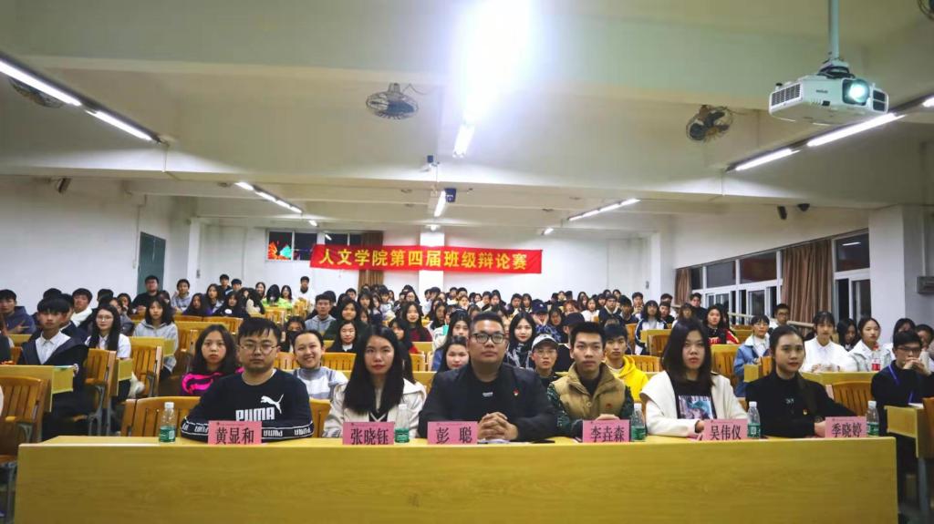 由人文学院团委主办、学生会学习部承办的第四届班级辩论赛总决赛于12月12日晚上7:00,在人文艺术楼505课室隆重举行。人文学院党总支副书记、副院长彭聪,学院团委书记李垚森,辩论队指导老师张晓钰以及部分辅导员老师、学生代表们参加本次活动。