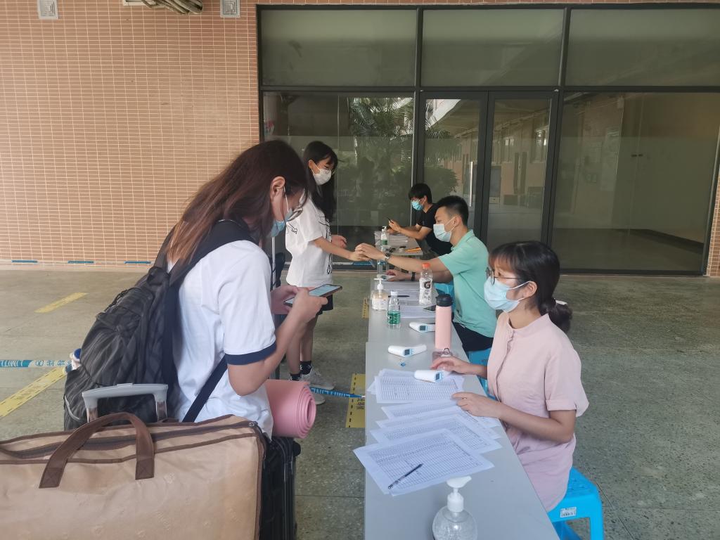 初夏的荔香湖畔,早已是一片郁郁葱葱,蝉鸣和鸟叫让夏的气息渐浓。6月28日,人文学院迎来了期盼已久2019级学前教育专业350学生返校。为确保学生返校报到各项工作的有序推进,学工办提前做足了充分准备,发送《致家长的一封信》,精心拍摄制作了学生返校指引视频,准备健康防疫包裹,严格遵循“洗、消、测、验、登”入校五步原则,学生们在经过身份核实、体温检测、扫码入校、行李消杀等环节有序入校,报到现场井然有序。