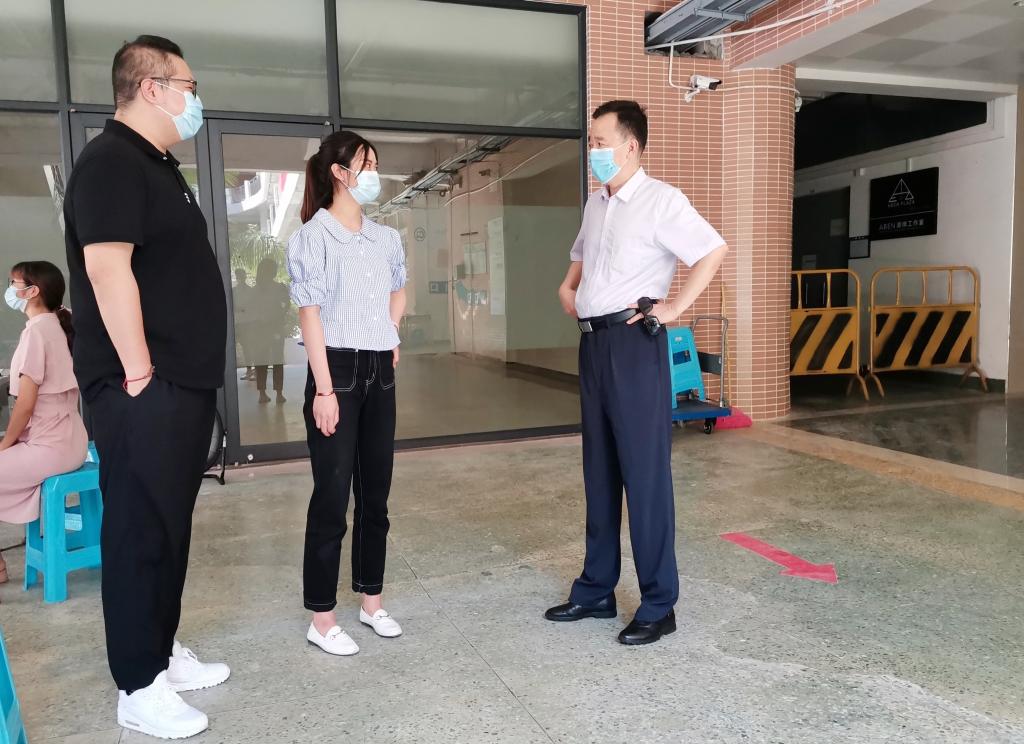 下午2:00,学校党委副书记兼人文学院院长鲁岩在副院长彭聪的陪同下到人文艺术楼察看学生返校报到情况,现场部署落实学生返校复学和疫情防控工作。鲁院长查看了学生报到体温测量、行李消毒、疫情防控应急设施等过程,现场询问了返校学生对返校复学工作安排的意见建议,向学工办详细了解学生到校情况、学生返校后的安置、管理、防疫知识宣传、返校学生身体状况以及出现发热学生后的应急处置等情况。他对在防疫一线的辅导员老师的辛勤付出表示感谢,同时也强调要始终把同学们的身体健康和生命安全放在第一位,压紧压实工作责任,联防联控,确保学生返校复学后校园的疫情防控工作平稳有序,学生的生活、学习秩序安全有序。
