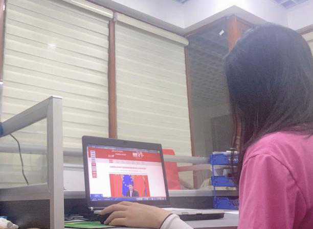 学生在进行“学习强国”学习