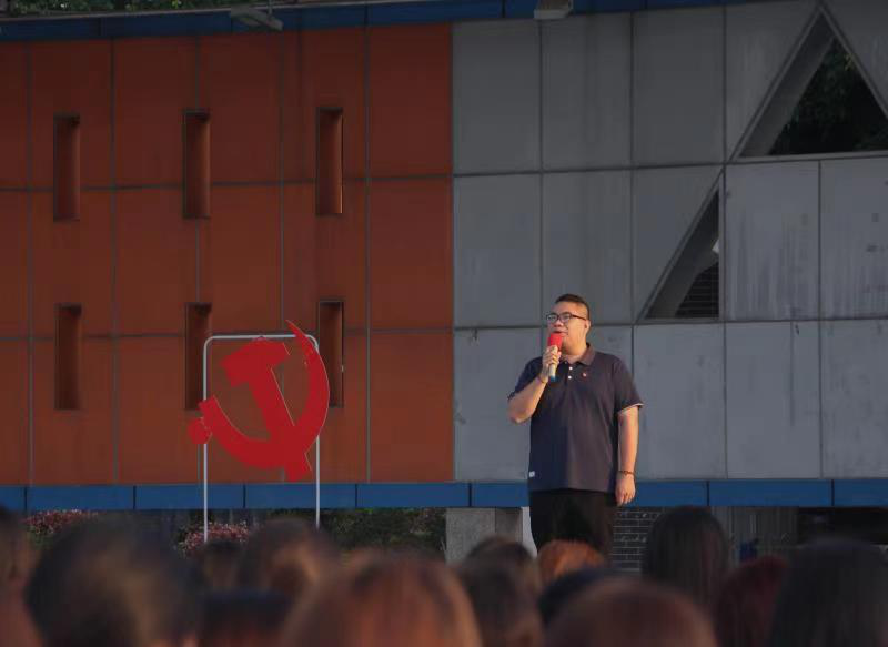 早上6:50,在铿锵有力、整齐划一的脚步声中,国旗护卫队护送五星红旗缓缓进场,升旗仪式全体师生齐唱国歌,行注目礼。升旗仪式后,学生代表林海容同学与全场师生一起进行爱党爱国学习,她朗诵了人民日报文章《百年奋斗,初心弥坚》,铿锵有力的声音迎来阵阵掌声。随后,彭聪作国旗下讲话,他从建党的开天辟地,到新中国成立的改天换地,到改革开放的翻天覆地等篇章介绍了党史,要求广大师生员工要以习近平新时代中国特色社会主义思想为指导,深入学习贯彻党的十九大精神,树牢“四个意识”,坚定“四个自信”,坚决做到“两个维护”。最后,彭聪向全体同学提出三点要求:珍爱生命,懂法守法;勤奋好学,加强锻炼;知书达理,懂得感恩,希望同学们能够珍惜在校时光,奋发图强,为祖国的繁荣建设和中华民族伟大复兴做出贡献。