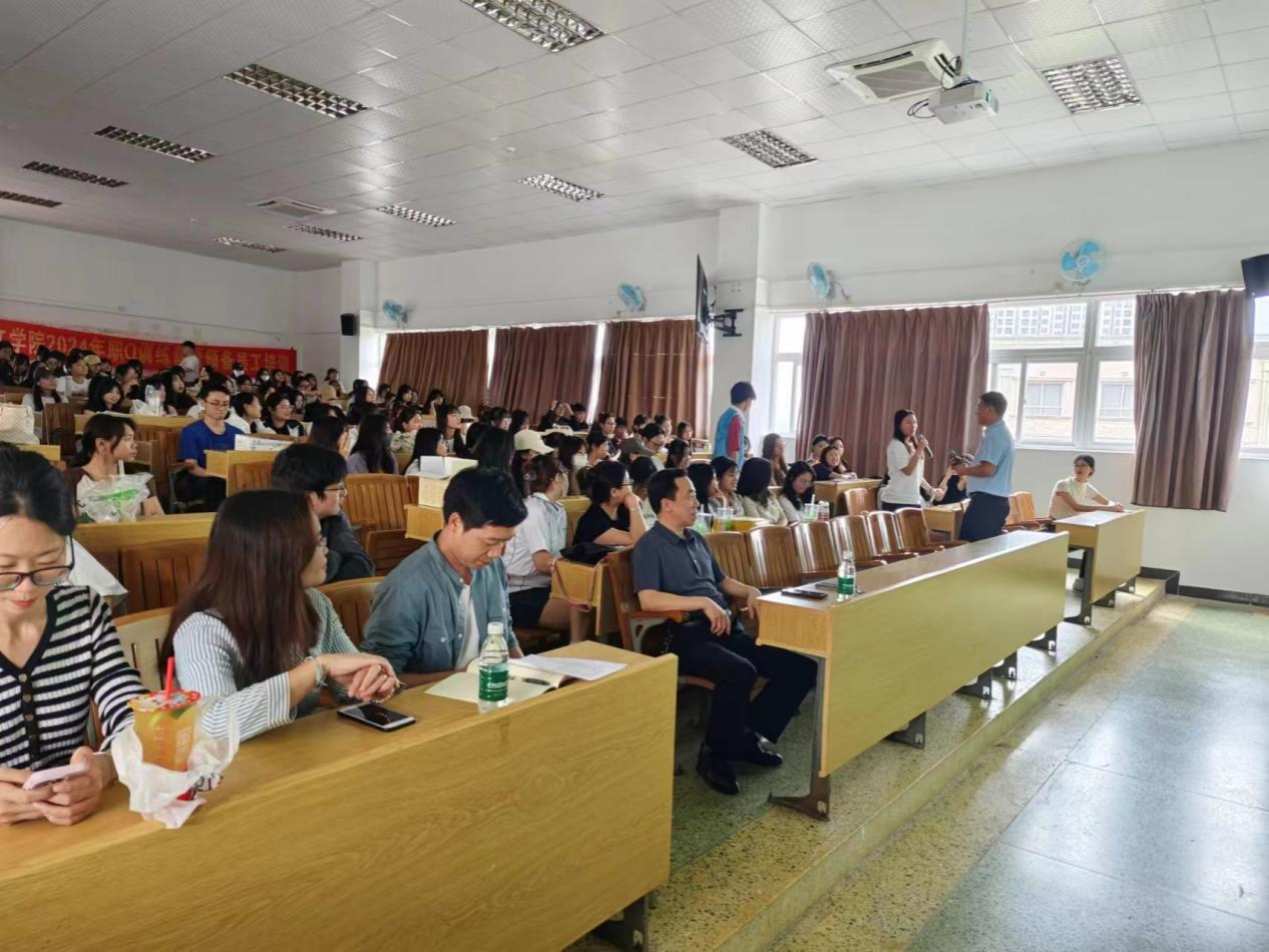 为进一步落实职业教育对接行业企业深化产教融合的要求,以产教融合实践项目帮助解决就业问题,4月11日上午,我院联合中山光阳教育集团在人文艺术楼605课室开展产教融合实践项目宣讲活动。中山光阳教育集团董事长刘一宏,我院院长鲁岩,学前教研室主任苏一波、副主任李元庆,22级全体辅导员以及22级学前教育专业200余名学生参加宣讲会。
