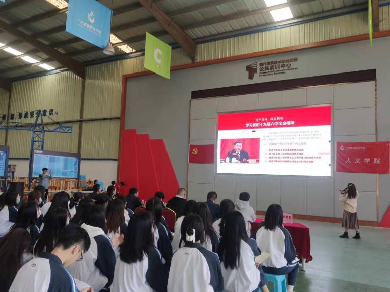 为推动形成崇尚科学的风尚,助推全民科学素质全面提升,以庆祝建党100周年为契机,2021年12月9日下午,人文学院在天马综合实训场举办以“科技强国,科技兴国,建设高水平科技服务基地”为主题的广州城市建设科普基地活动。学校科技处处长鲁五一,艺术学院党委副书记、副院长徐德毅,人文学院党委副书记、副院长彭聪,副院长朱丽芳,机电工程学院办公室主任龙轩、人文学院音乐表演教研室主任王文春、学院党委组织员李艳霞,精通城建职业培训学院王若枫老师以及40名学生党员及积极分子出席了本次活动。活动由人文学院学生第一党支部书记刘颖诗老师主持。