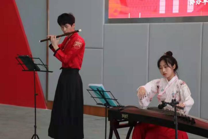 人文学院音乐表演专业学生带来精彩的歌曲表演和民乐演奏,同学们嘹亮的歌声和美妙的乐声萦绕整个会场,现场掌声欢呼声不断,充分展现了学生专业的技能水平,随后,王若枫老师带领同学们到施工体验区进行建筑施工安全知识学习教育,普及科学知识。