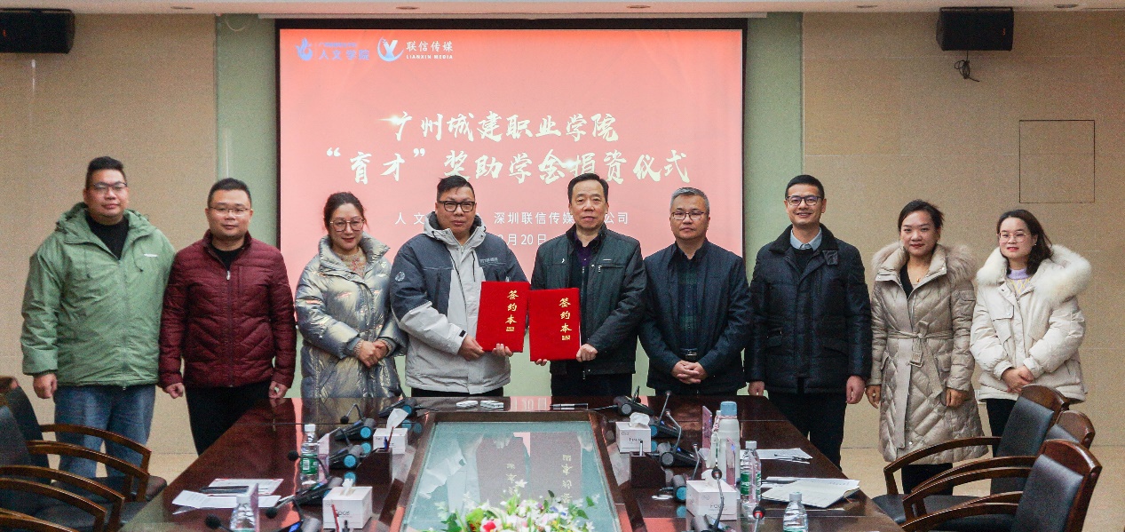 12月20日下午,我院在行政楼501会议室举办深圳联信文化传媒有限公司 “育才”奖助学金捐赠仪式。深圳联信文化传媒有限公司总经理杨凌,“校中厂”联信直播基地负责人吴佳娜,学校党委副书记、副校长张德宜,学校党委副书记兼人文学院院长鲁岩出席了本次捐赠仪式,并深入研讨直播基地未来发展规划。
