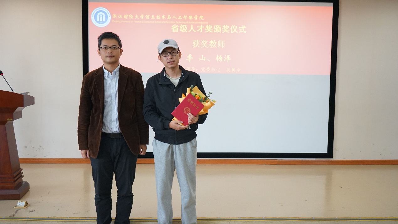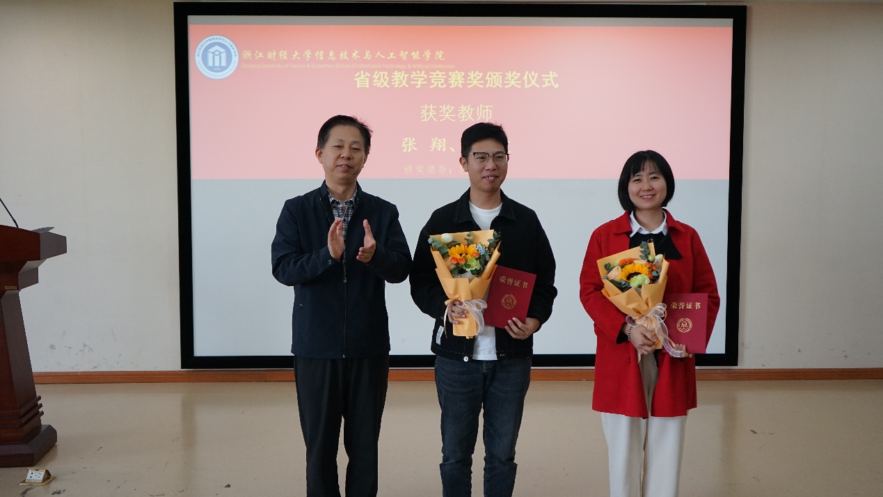 (学院院长张帅为获省级教学竞赛奖教师颁奖)