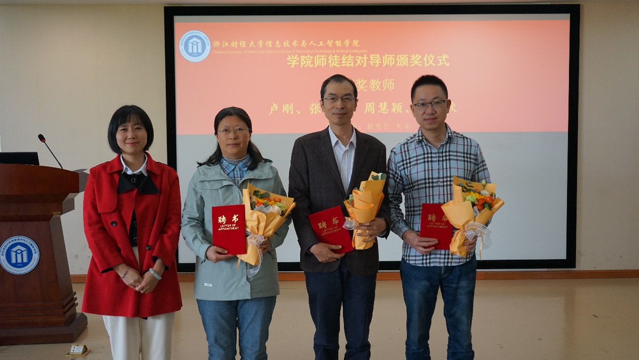 (学院副院长朱凌给“师徒结对”导师颁发聘书)