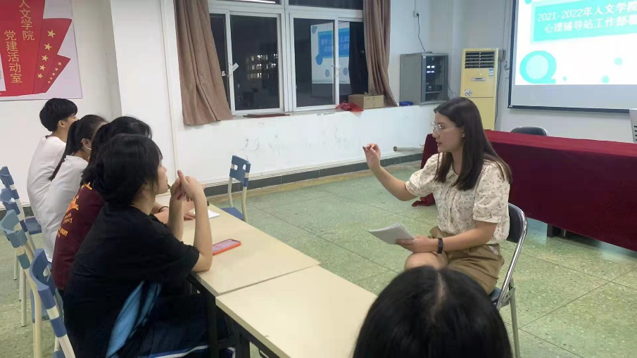 为进一步加强学生管理工作和心理健康教育工作、部门全体成员的团结协作,人文学院于9月17日晚上7点在人文艺术楼513会议室团建活动。人文学院心理辅导站指导老师马爱云,学院心理辅导站全体学生干部一起参与。