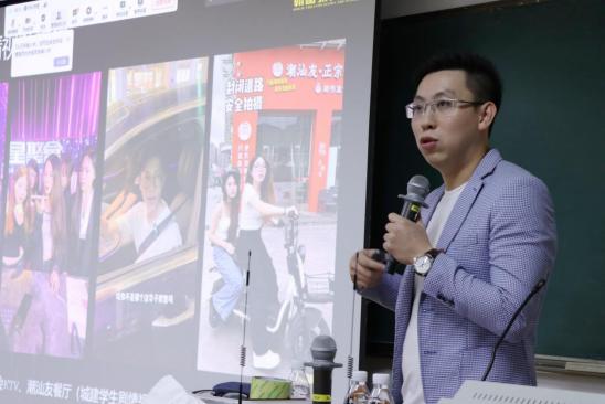 翰略传媒负责人庄凯伟、运营操盘手王泰利向参赛队员解读同城创意短视频、视频号校园达人两个赛道的参赛细则,介绍了同城短视频的业务现状、如何借鉴爆款短视频及创作优质短视频等相关内容,对参赛队伍作品创作提出指导建议。
