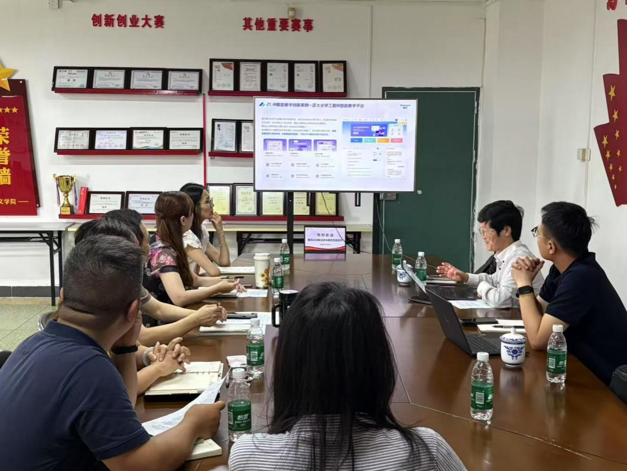 校企双方人员围绕AI教学技术应用、AI相关课程共建等方面合作进行深入研讨,并达成初步合作意向。