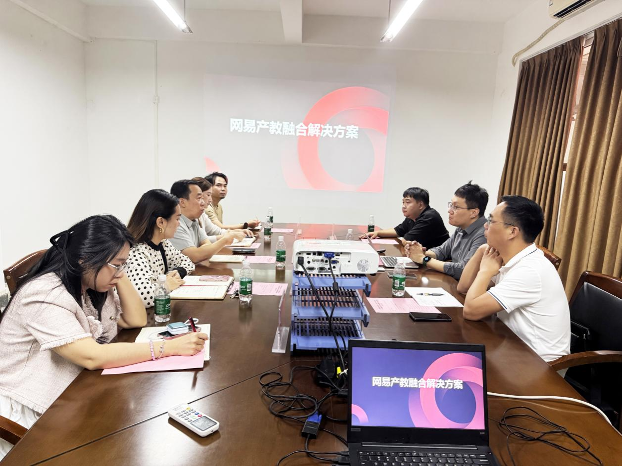 为深化产教融合、推动校企协同育人,10月30日,网易有道信息技术(北京)有限公司产教融合中心助理副总裁王辉,华南区区域总监叶朝阳,华南区区域经理欧阳艺驰一行莅临我校,就校企合作事宜开展专项调研并举行洽谈会。我院院长鲁岩,副院长王婧、朱丽芳,新媒体教研部部长李锦洪,校企合作专员谭嘉倩热情接待了王辉副总裁一行,双方围绕合作模式创新、人才培养、资源共享等议题展开深入交流。