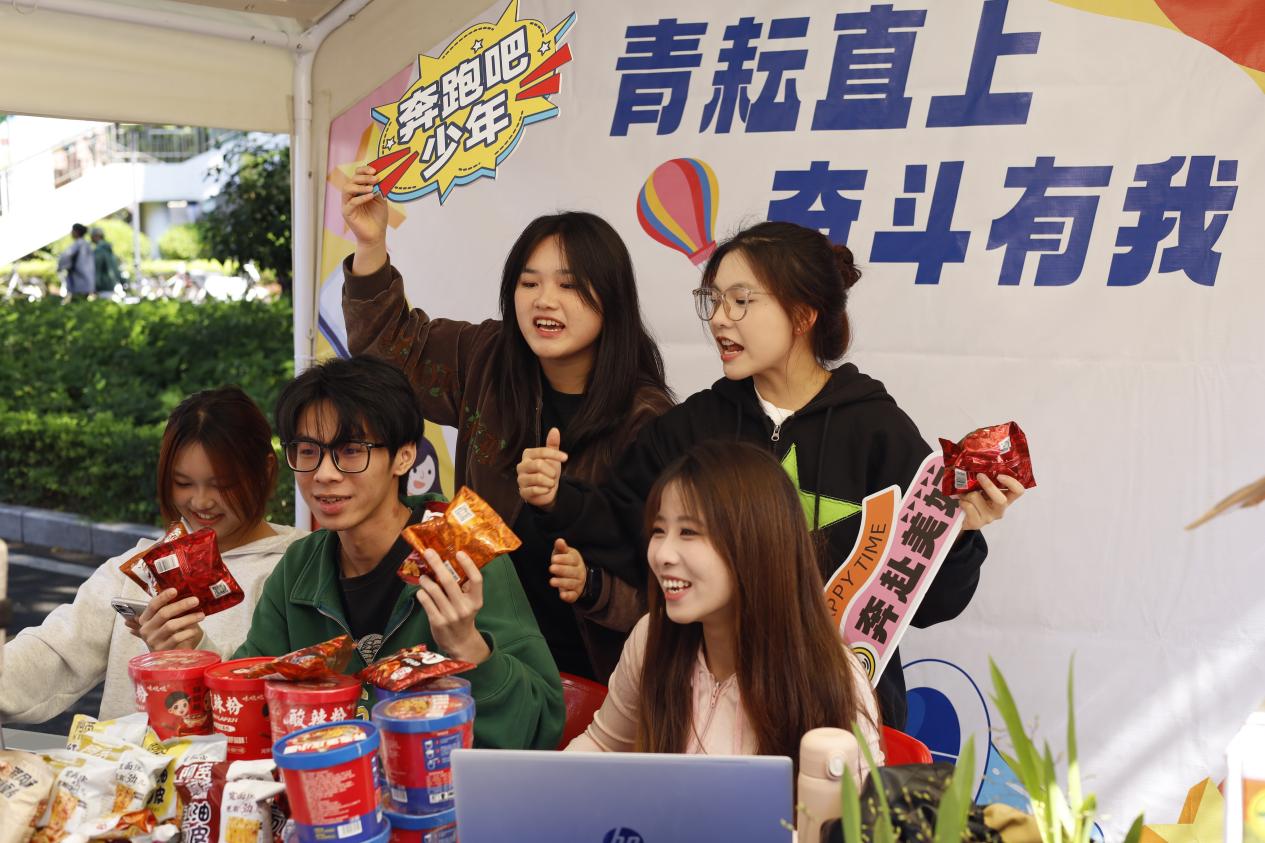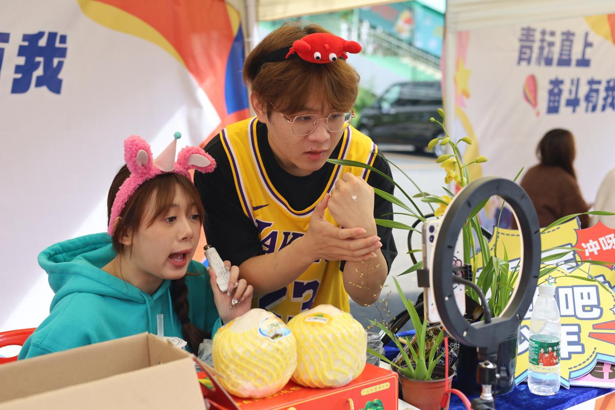 大赛自11月启动,吸引了来自从化9大高校的近500名学生报名参加,共组建参赛队伍95支,以“青耘直上,奋斗有我”为话题,参赛团队在抖音平台发布短视频累计超过1200条,话题播放量超2200万。经过预选赛、半决赛的激烈角逐,共35支队伍进入总决赛,开播场次累计142场,日均开播70余场,累计吸引了千余名学生前往现场观摩。