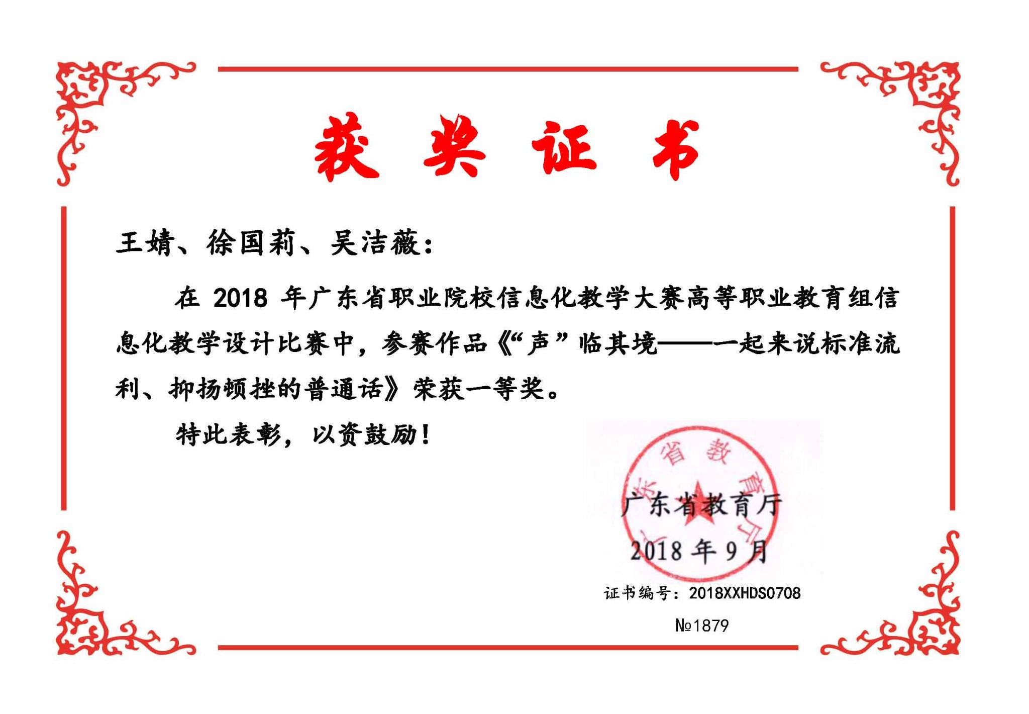 2018年广东省职业院校信息化教学大赛一等奖