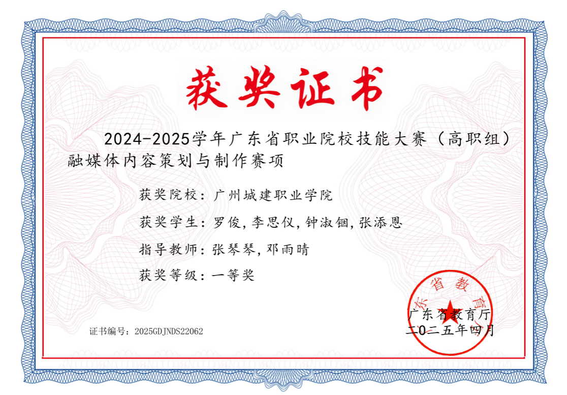2024-2025年度广东省职业院校技能大赛一等奖
