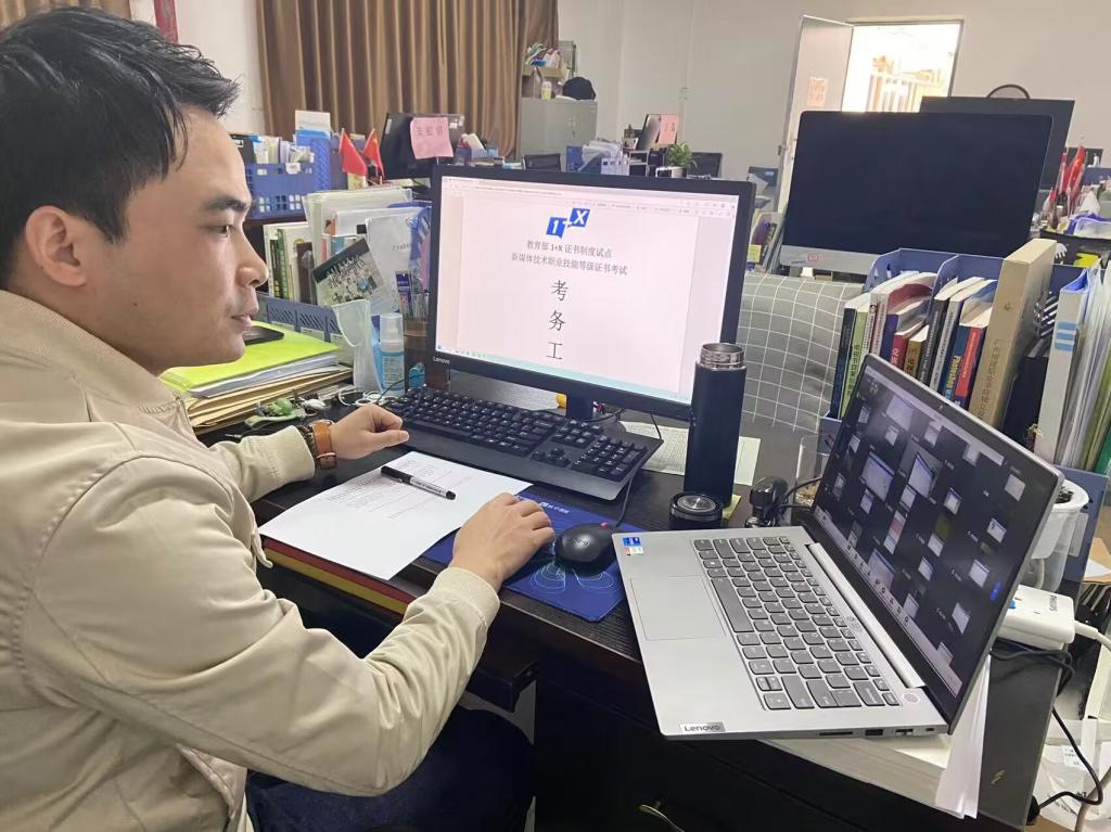 为贯彻落实教育部《关于在院校实施“学历证书+若干职业技能等级证书”制度试点方案》文件精神,2022年12月3日下午,网络新闻与传播专业群圆满完成了“1+X”新媒体技术(中级)职业技能等级证书考试工作。本次考试分成理论考试和实操技能两部分合计4个小时,因受疫情影响,全程采用了线上双机考试模式。网络新闻与传播、传播与策划两个专业共70名学生参加了考试。