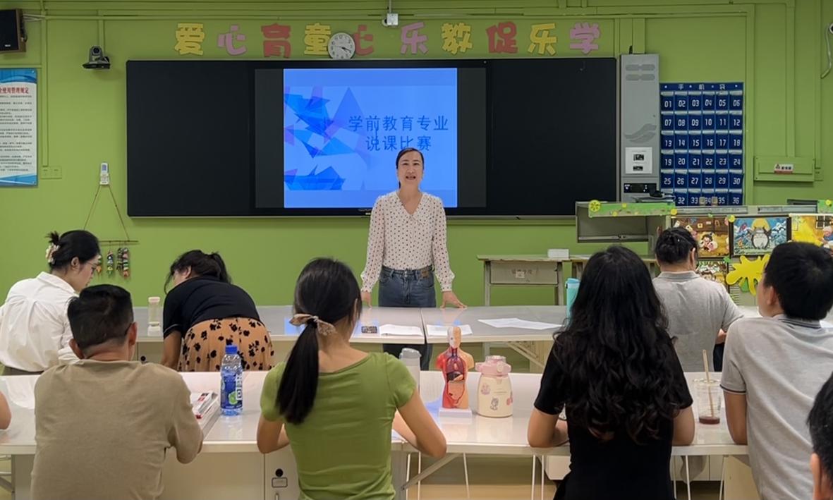 为提升教师的教学能力和专业素养,9月14日下午,学前教育教研室在人文艺术楼404实训室举办新学期教师说课比赛活动,活动邀请了学院教学副院长王婧,学院兼职教学督导王玉芳教授、陈洁副教授、尚东玲副教授、袁跃宁老师等担任评委,活动由教研室主任苏一波主持。