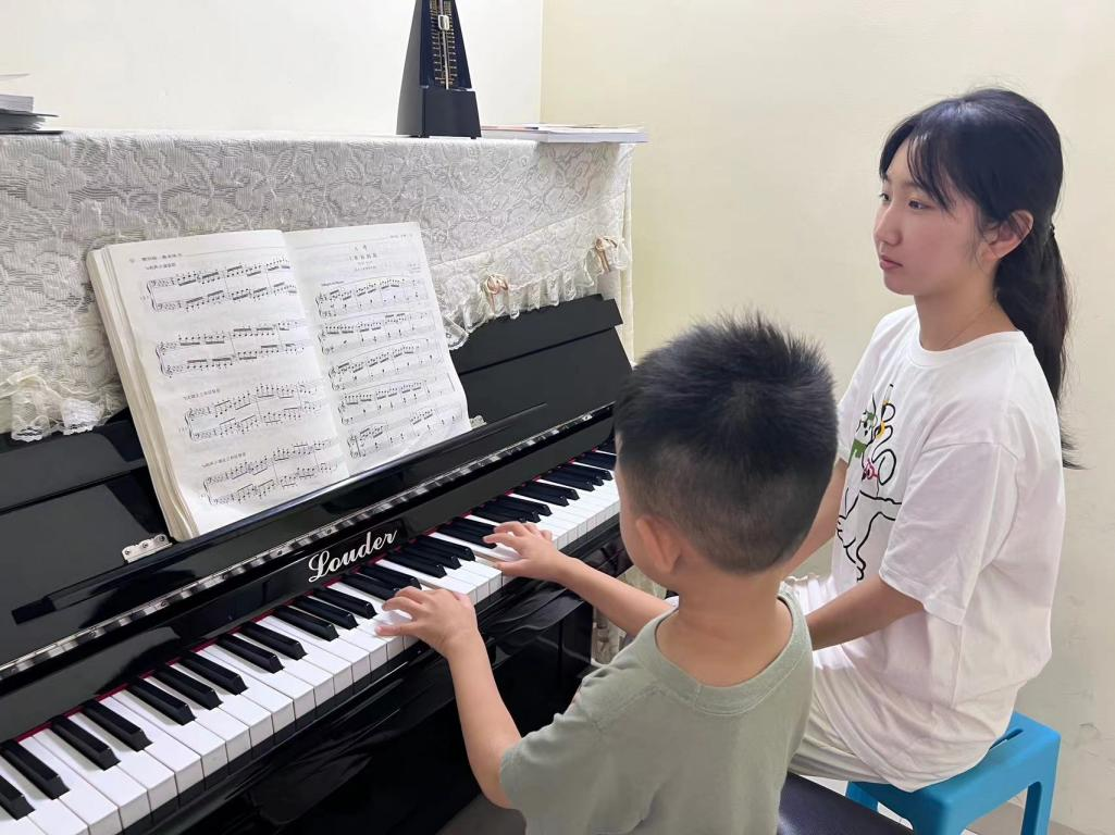 在实习期间,陈佩珊担任了乐理科目的教学,充分发挥自己的专业理论优势,认真备课,精心设计每一节课。她针对小朋友的性格特点,创新课程,将音乐知识与游戏、故事等各类生活中的元素相结合,让学生在轻松愉快的氛围中学习音乐。通过丰富多彩的教学活动,激发学生的学习兴趣和热情,让学生在“玩闹”中学习枯燥的理论知识。她认为,学音乐不仅仅是教会学生唱歌弹琴,更重要的是培养学生的音乐素养和审美能力,在她的课堂上,学生们不仅能够学到专业的音乐知识,更能够感受到音乐的魅力和美好。